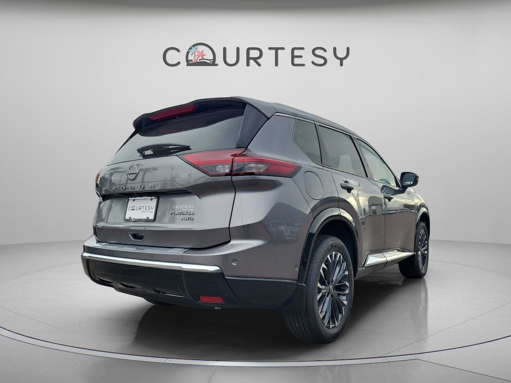 28/35 City/Highway MPG Gun Metallic 2026 Nissan Rogue Platinum AWD CVT with Xtronic 1.5L DOHC AWD.