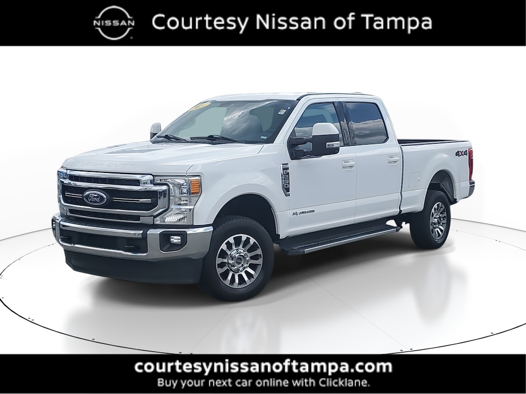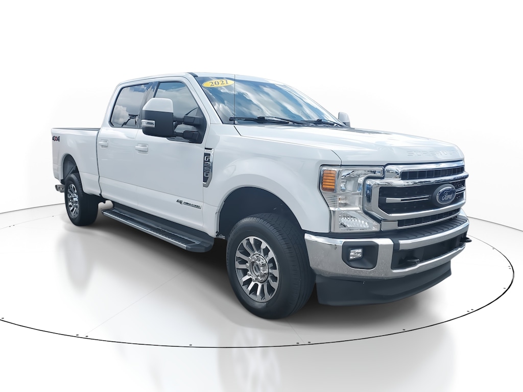 LEATHER SEATS, BLUETOOTH, HANDS-FREE, B&O PREMIUM ADIO SYSTEM, HEATED AND VENTILATED FRONT SEATS, 2021 Ford F-250 Lariat Crew Cab 4x4 Oxford White, 6.7L Power Stroke Diesel, Lariat Value Package, Navigation & Chrome Steps A heavy-duty truck built to handle it all this 2021 F-250 Lariat delivers uncompromising strength and everyday refinement. Powered by Fords legendary 6.7L Power Stroke V8 Turbo Diesel, its ideal for towing, hauling, and long Jacksonville drives with ease. The Oxford White exterior pairs perfectly with the black leather interior and chrome accents for a timeless, professional look. 6.7L Power Stroke V8 Turbo Diesel engine with 10-speed automatic transmission Lariat Value Package: LED box lighting, remote start, driver memory seat, heated & ventilated front seats Navigation System with SYNC 3 and 8 touchscreen 6 angular chrome step bars 10,000-lb GVWR package and Trailer Brake Controller BLIS with Cross-Traffic Alert and Trailer Tow Monitoring B&O 10-speaker premium sound system PowerScope trailer-tow mirrors (power-folding, heated, and telescoping) Power sliding rear window with privacy tint and defrost Dual-zone electronic climate control with particulate air filter Power 10-way driver / 8-way passenger seats 110V/400W outlet, reverse sensing system, rearview camera Pre-Collision Assist with Automatic Emergency Braking AdvanceTrac with Roll Stability Control and safety canopy airbags Why buy from Coggin Ford Jacksonville Transparent, market-based pricing and no hidden fees Multi-point inspection and complimentary CarFax report Guest-focused buying experience with quick financing options Locally trusted dealership serving Jacksonville and Northeast Florida Committed to reliability, value, and long-term service after the sale jacksonville used ford f250, ford super duty lariat for sale, power stroke diesel jacksonville, oxford white ford truck, heavy duty truck northeast florida, f250 lariat 4x4, diesel crew cab truck, tampa ford trucks, st. augustine ford, southern georgia diesel truck, kingsland ga ford dealer, starke fl used f250, ** B&O SOUND SYSTEM, 10 SPKR BLIS W/CROSS-TRAFFIC ALERT ELECTROCHROMIC MIRROR FORDPASS CONNECT 4GWI-FI HOTSPOT TELEMATICS MODEM MONO BEAM COIL SPRING FRT SUSPENSION W/STAB BAR PRE-COLLISION ASSIST W/AEB REMOTE KEYLESS ENTRY REVERSE SENSING AND REAR VIEW CAMERA SIRIUSXM -**, **LED BOX LIGHTING .REMOTE START SYSTEM .DRIVER SIDE MEMORY SEAT .HEATED/VENTED FRONT SEATS**, **NAVIGATION SYSTEM **, **LOW MILES**, 4WD, Easy Entry®/Exit Memory Driver's Seat Feature, GVWR: 10,000 lb Payload Package, Lariat Value Package, LED Box Lighting, Memory Power-Adjustable Pedals, Order Code 608A, Power Heated/Ventilated Driver Seat w/Memory, Power Heated/Ventilated Passenger Seat, PowerScope Trailer Tow Mirrors w/Memory, Remote Start System, Voice-Activated Navigation. Recent Arrival! CARFAX One-Owner. Priced below KBB Fair Purchase Price!